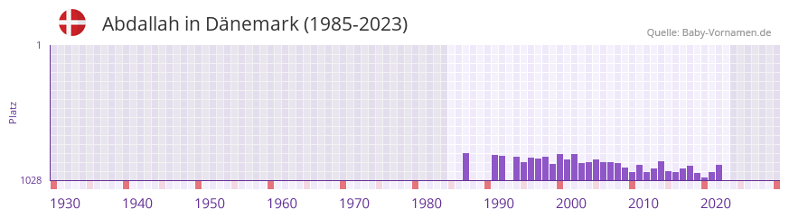 In Dänemark wurde Abdallah in den letzten 10 Jahren ca. 30 Mal als Erstname vergeben (120 Mal von 1985 bis 2023).