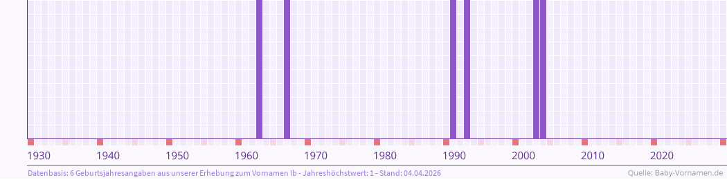 In Deutschland wurde Ib in den letzten 10 Jahren ca. 20 Mal als Erstname vergeben (20 Mal von 2010 bis 2024).